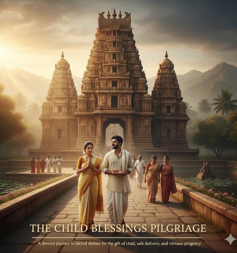 A devoted journey to sacred shrines for the gift of a child, safe delivery, and virtuous progeny.